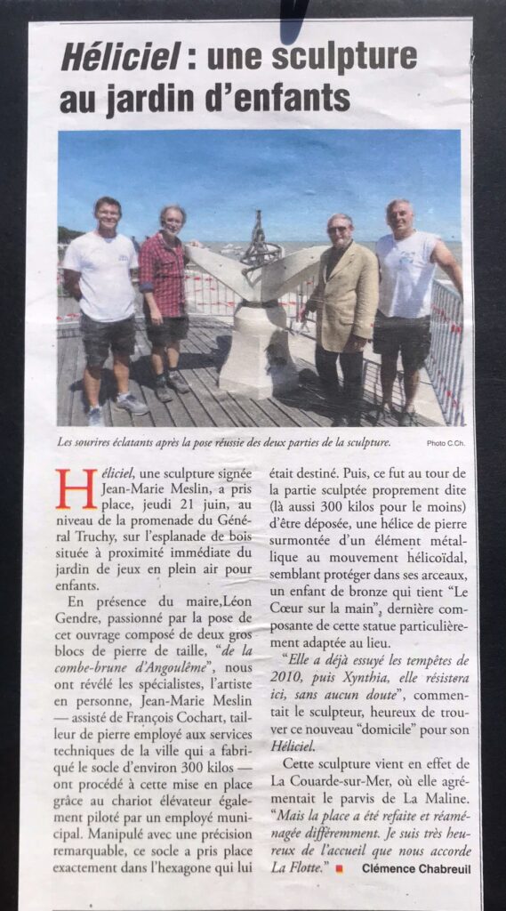 Cette sculpture autrefois installée devant la salle de spectacle « La Maline » à la Couarde sur mer est désormais face à la mer à la Flotte en Ré, plus qu’une forme d’art ; c’est un point de rencontre, un lieu de mémoire où chacun peut se connecter à la grandeur de la mer et à l’esprit d’aventure qui nous habite.