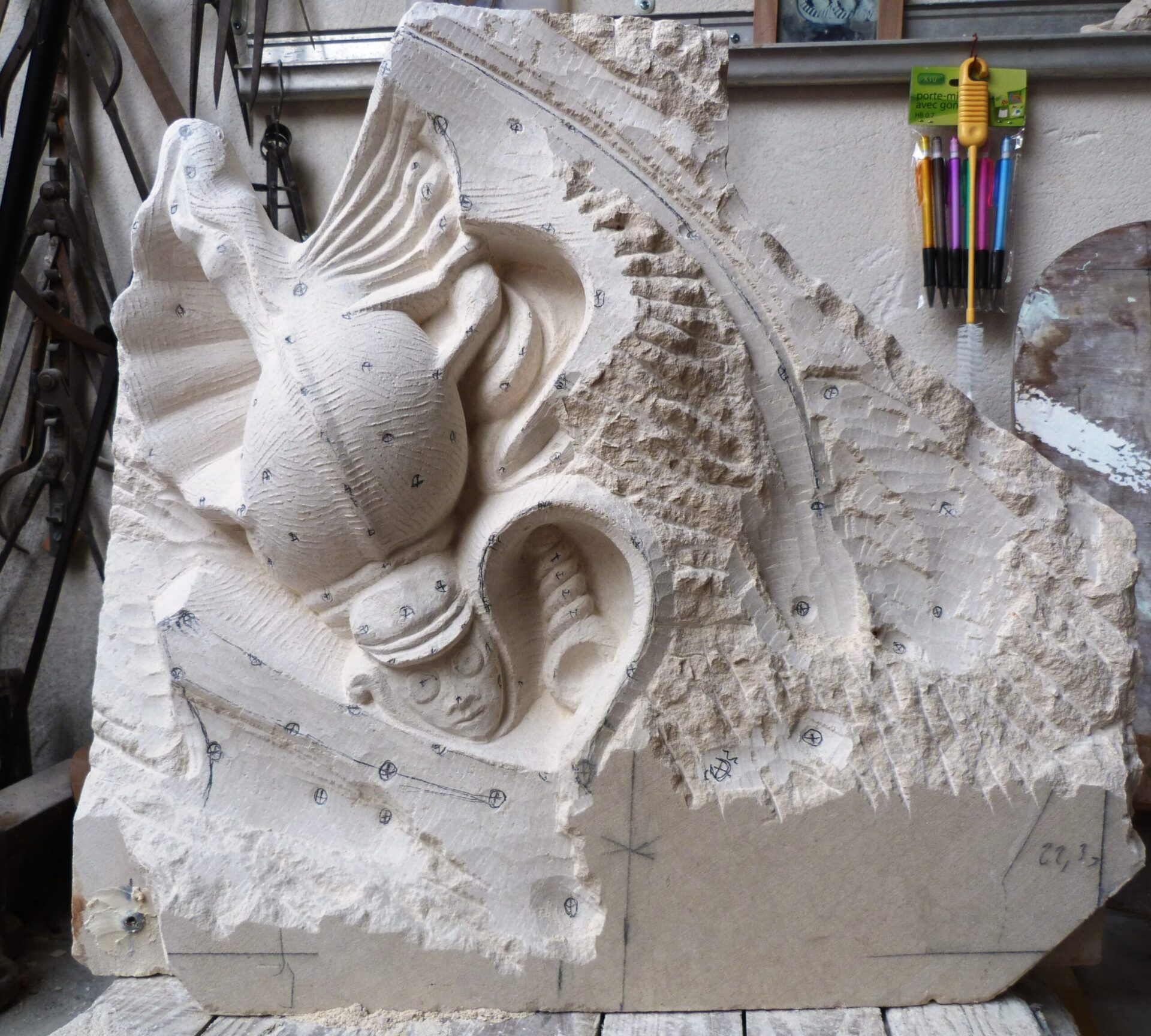 Sur ce mur, à Rivedoux-Plage, ce bas-relief en pierre prend tout son sens.