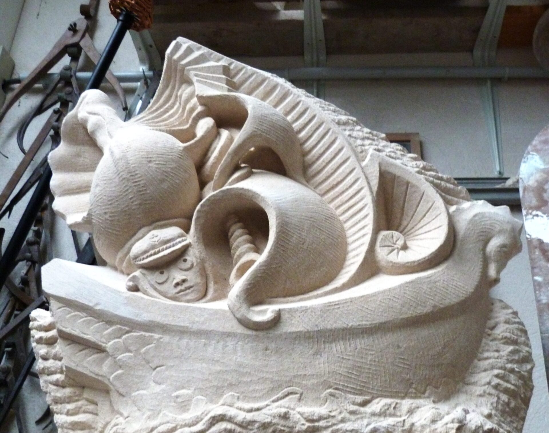 Cette œuvre capture la violence des éléments déchaînés. Ainsi les vagues impétueuses, la fureur de la tempête et l’acharnement du vent sont gravés dans la pierre. Au cœur de cette tourmente, un petit personnage sculpté, seul face à l’immensité et au déchaînement des éléments. Il incarne la fragilité et le courage de ceux qui ont affronté l’océan sans jamais revenir.