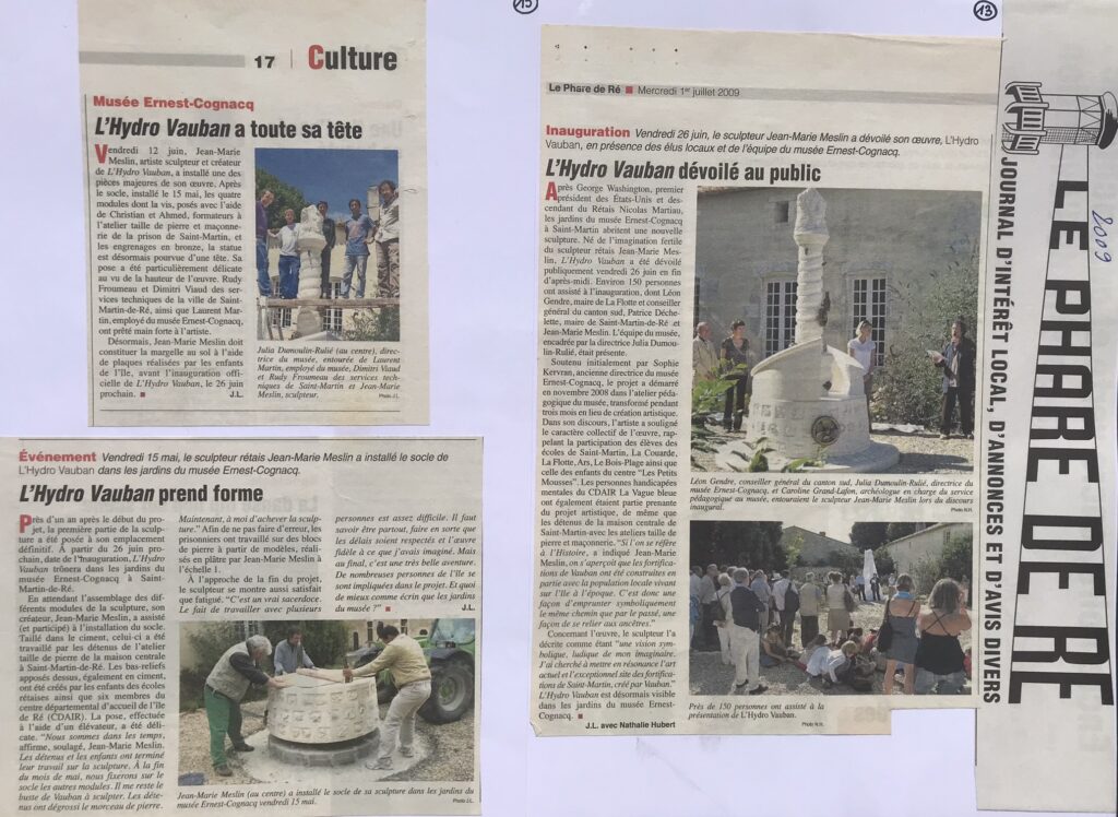 « L’HydroVauban » installée en 2010 dans les jardins du Musée Ernest Cognacq à Saint-Martin de Ré. C’est une sculpture monumentale qui rend un vibrant hommage à l’ingénieur militaire le plus illustre de notre histoire, Sébastien Le Prestre de Vauban. Son génie a façonné les fortifications emblématiques de Saint-Martin-de-Ré.