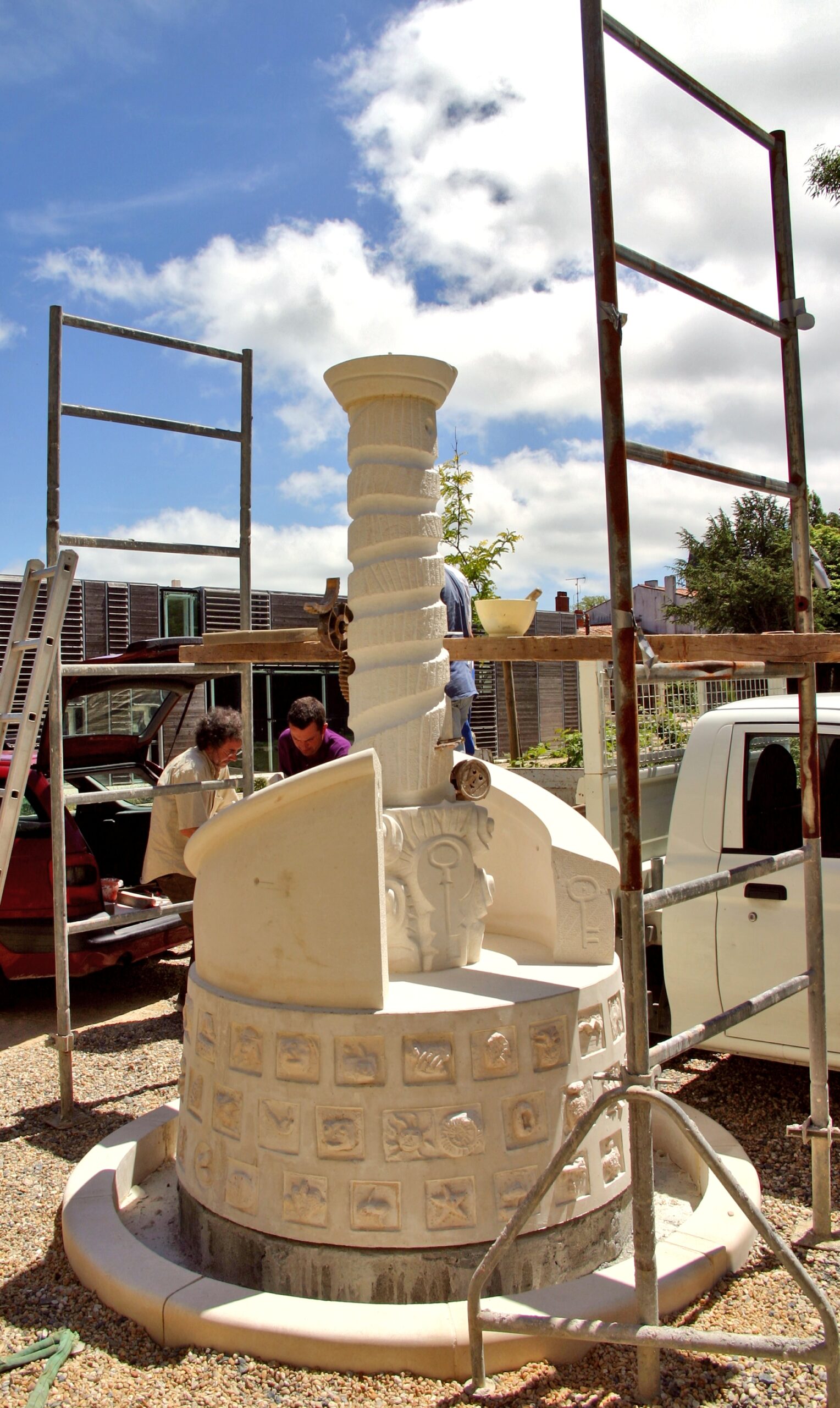 Réalisée à partir de pierres très dures, elle symbolise la robustesse et la pérennité des ouvrages de Vauban. La sculpture intègre également des bas-reliefs finement sculptés sur son socle. Ces détails, gravés avec soin, racontent des histoires, évoquent des symboles et célèbrent le lien indéfectible entre l’homme, l’eau et le bâti.