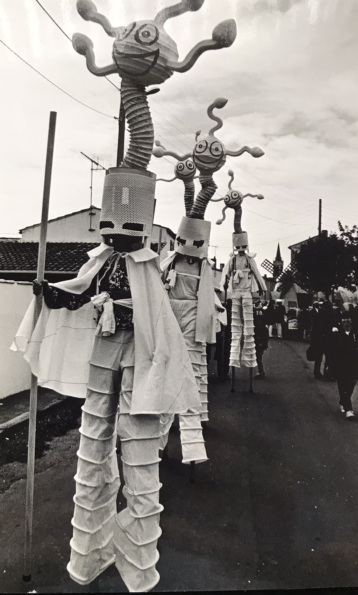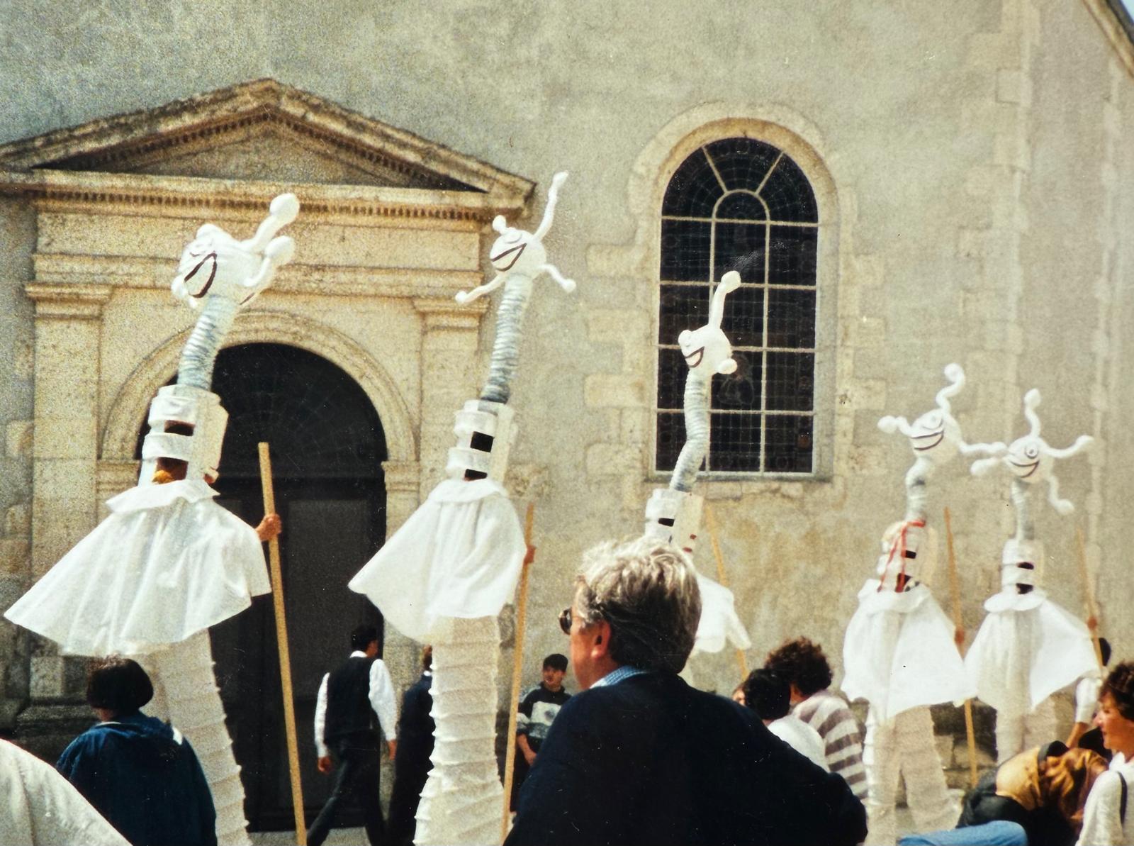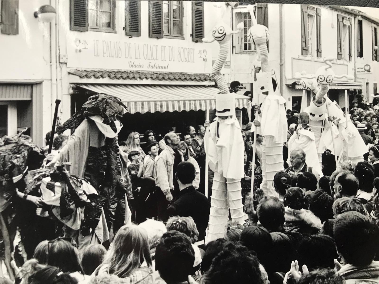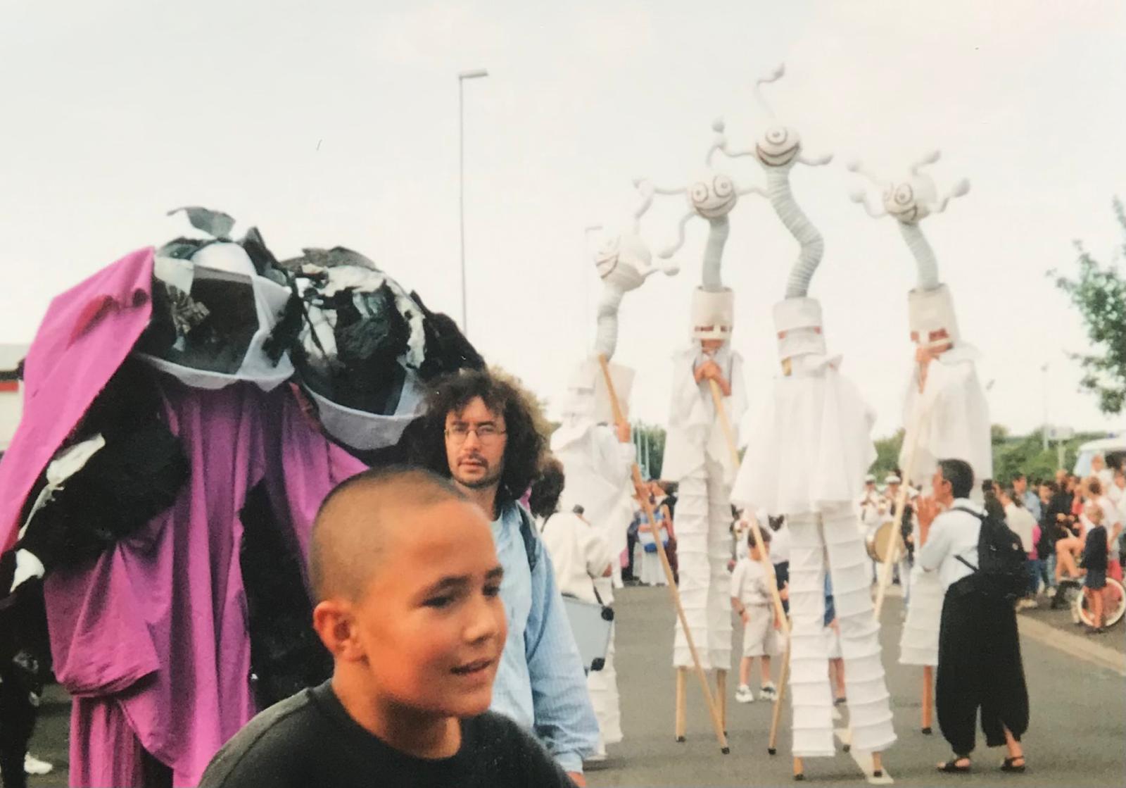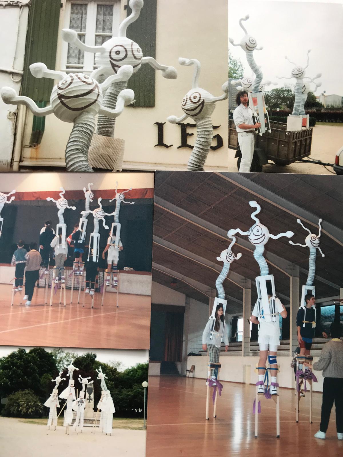 Dans les années 90, une immersion dans le monde du cirque m’a été offerte pour créer des costumes sur mesure pour une troupe d’échassiers.
