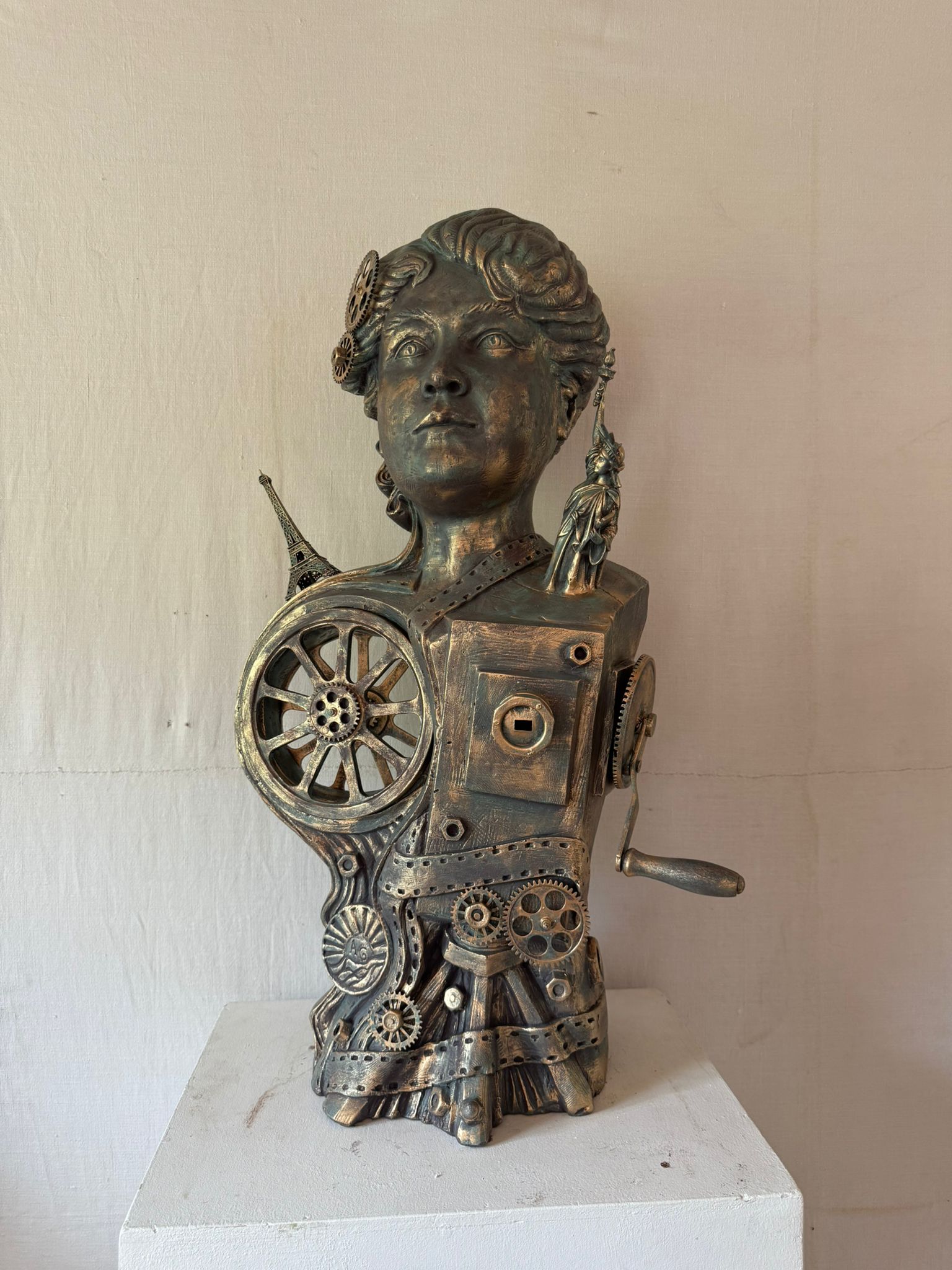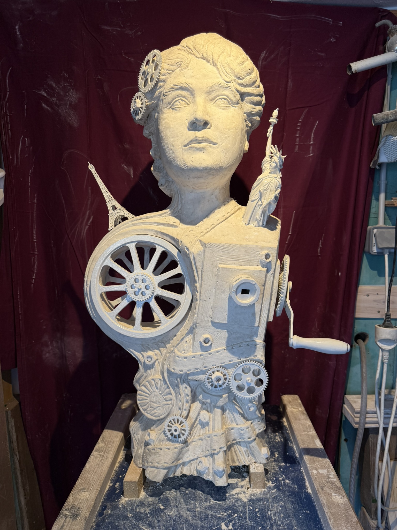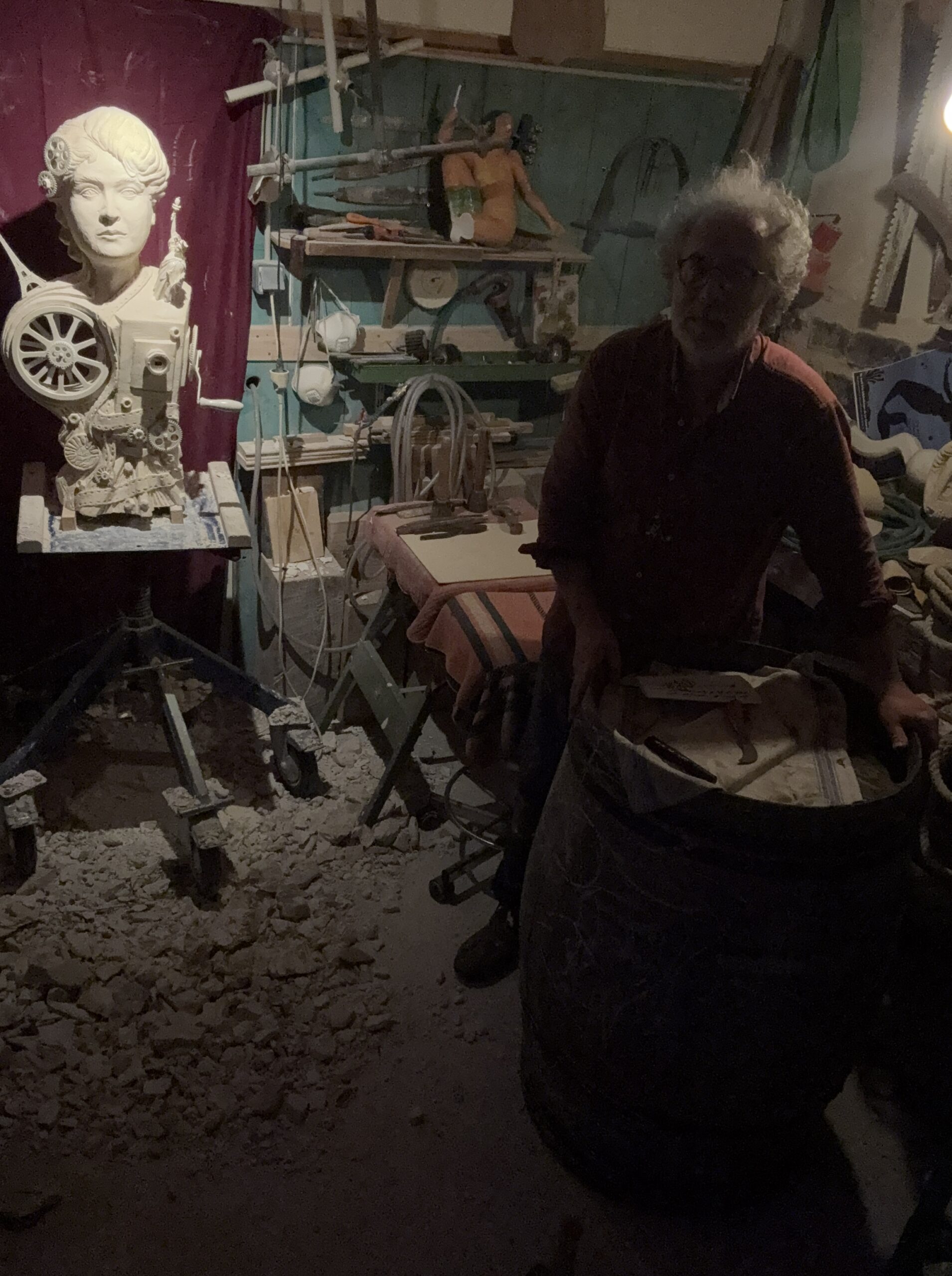 J’y incarne un artiste maudit au milieu de ses sculptures avec un dialogue possible avec le buste d’Alice Guy (que j’ai créé pour cet événement).