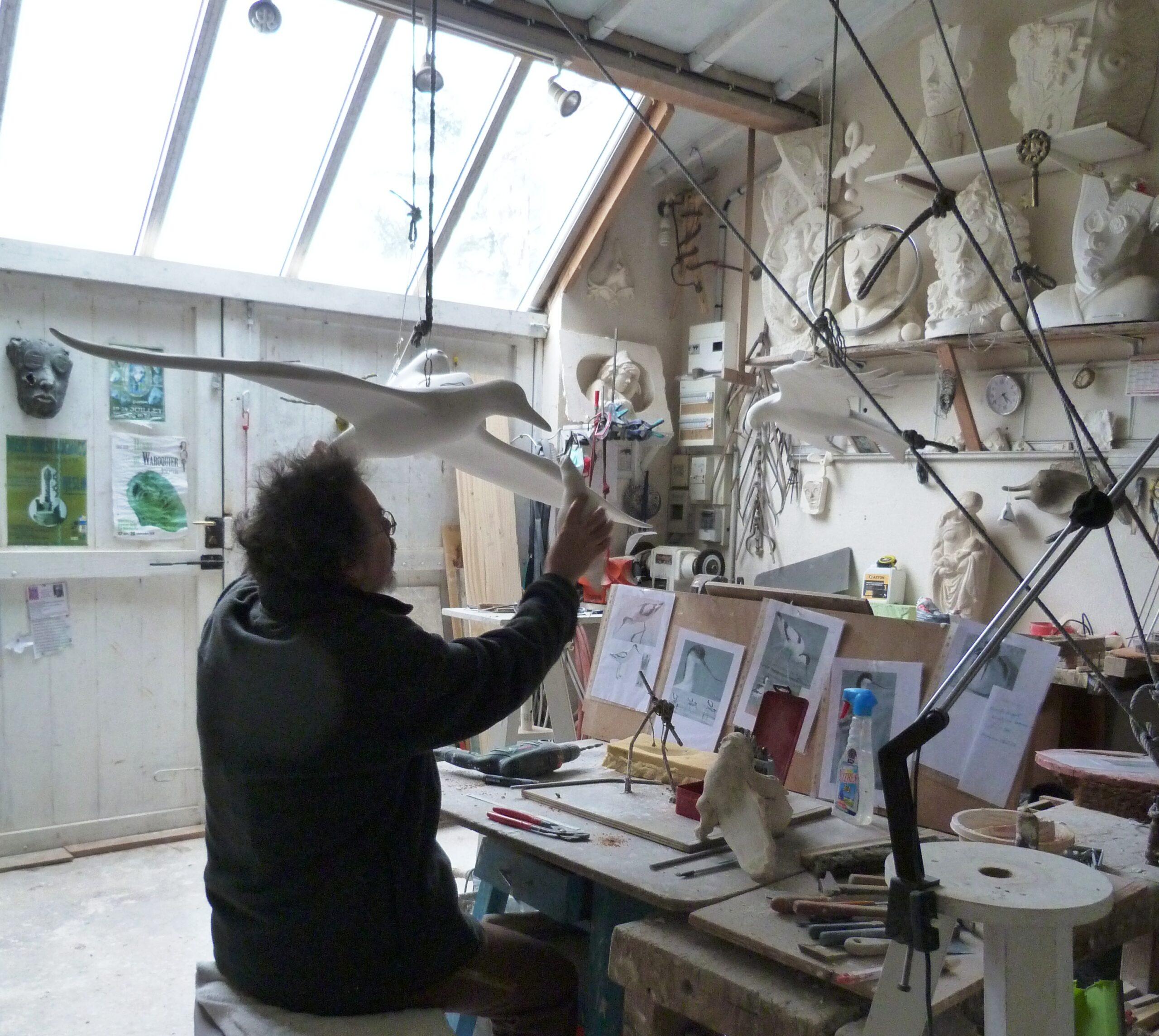 Ce projet m’a permis de créer une série d’oiseaux sculptés en plâtre, de diverses dimensions, allant de petites pièces à des œuvres de plus grande envergure.