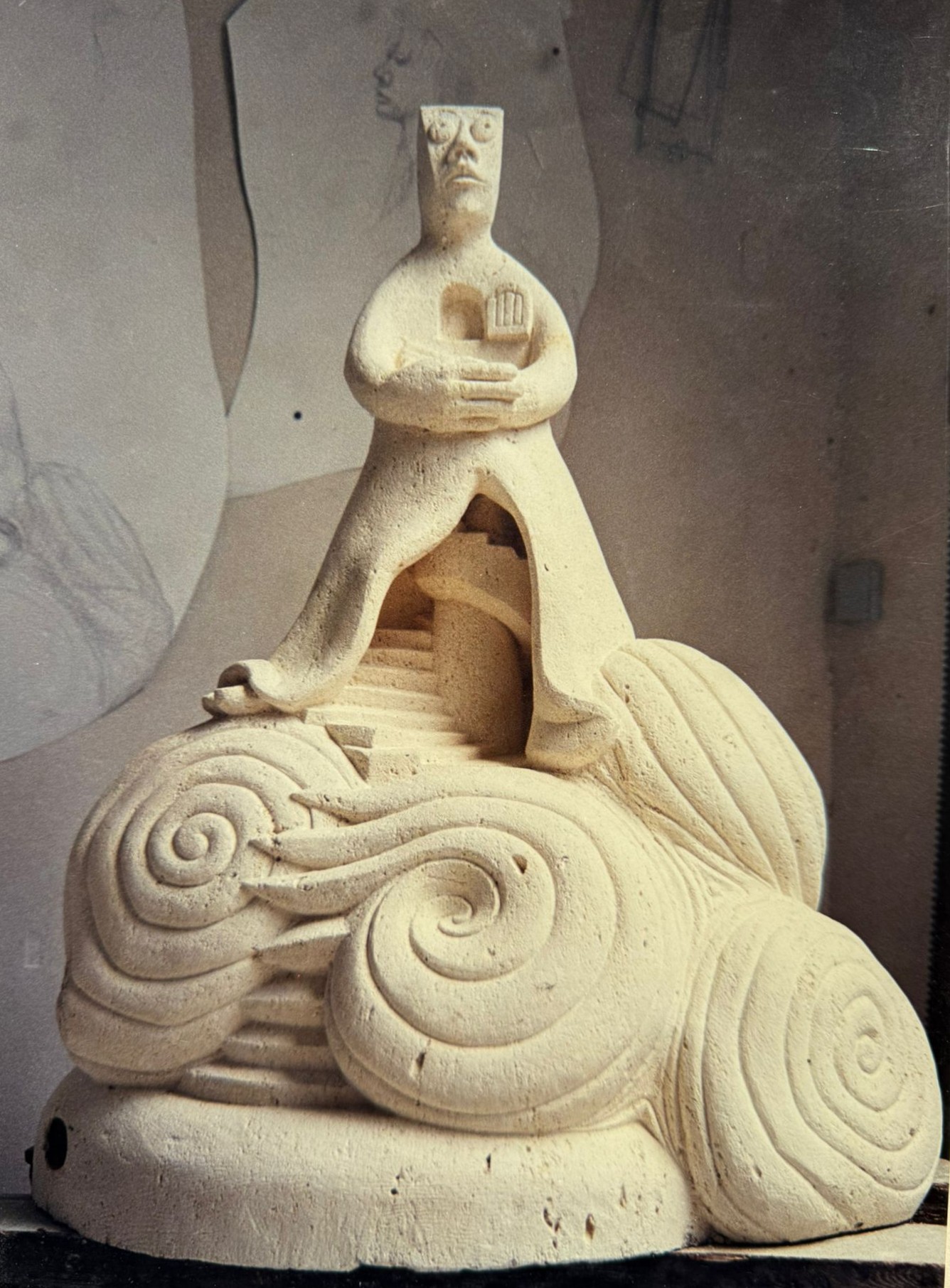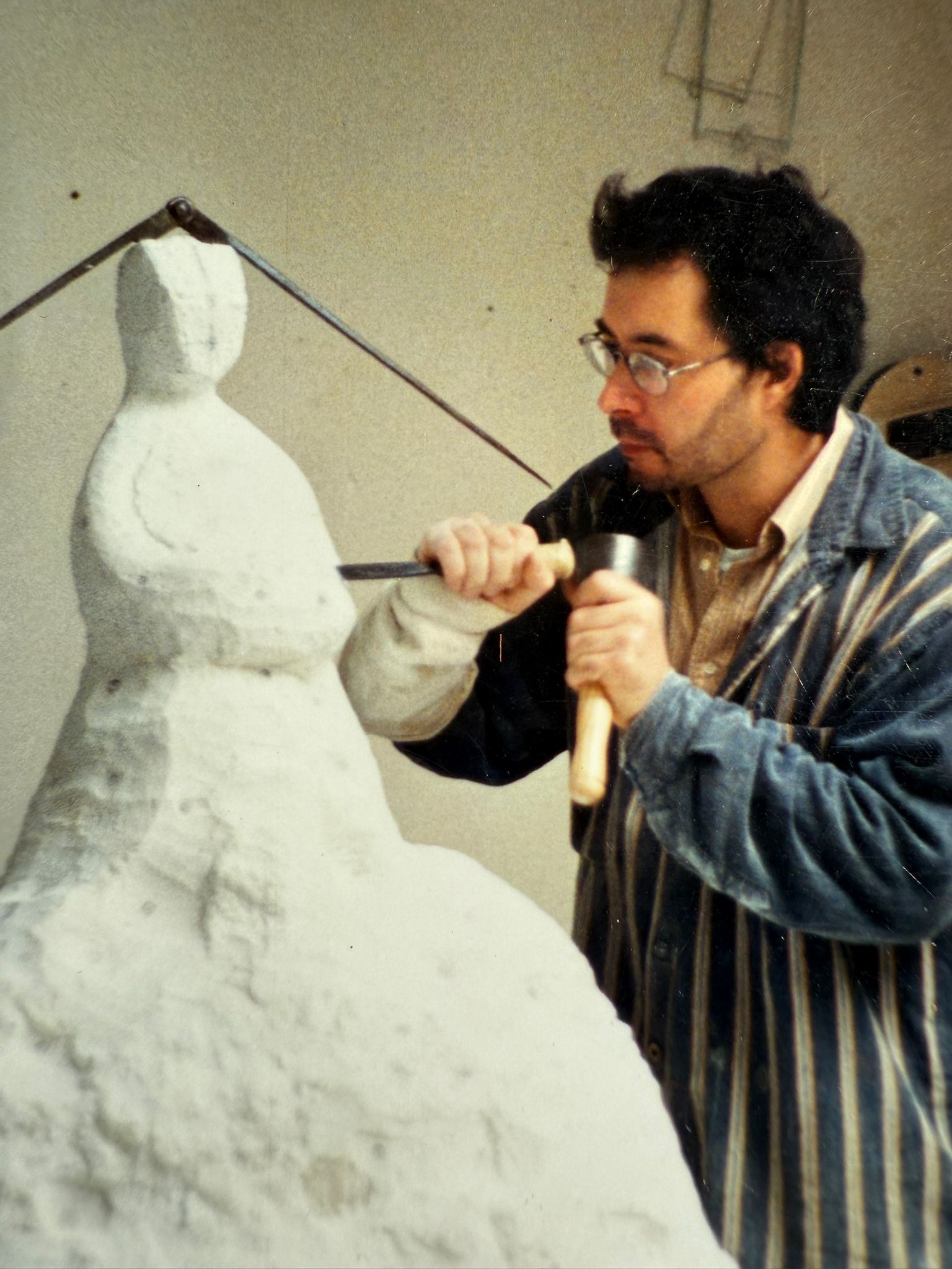 En août dernier, surprise à l’atelier !… Gaspard a pris forme au creux de mes mains, dans l’argile humide, puis moulé en une sculpture de plâtre blanc.
