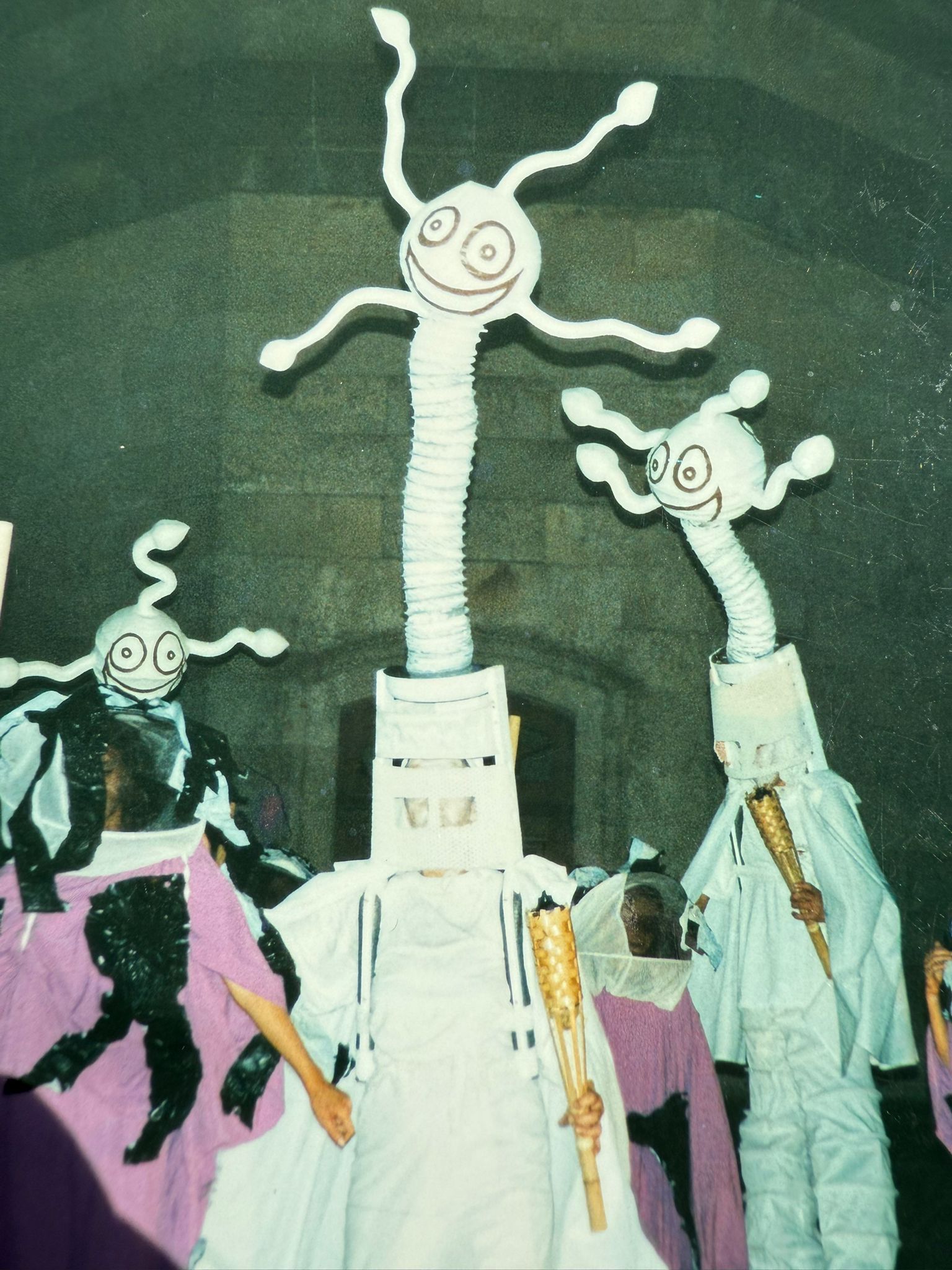Donnant vie à des silhouettes aériennes, des boules en papier mâché légères, des pantalons fluides soutenus par le rotin, et des visages joyeux qui dansent avec la lumière, une étape importante dans ma démarche artistique.